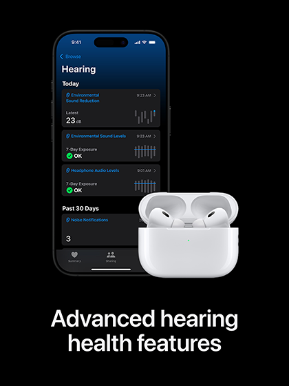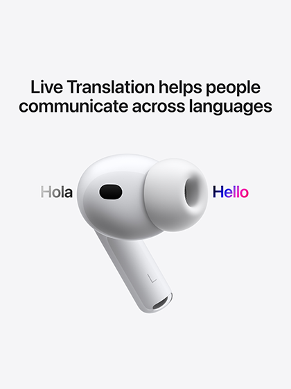 Now with up to 2x more Active Noise Cancellation than AirPods Pro 2.◊ Refer to legal disclaimers.Exceptional sound quality. All-new heart rate sensing during workouts.◊ Refer to legal disclaimers. A more secure in-ear fit.◊ Refer to legal disclaimers. IP57 dust, sweat and water resistance.◊ Refer to legal disclaimers. Refer to legal disclaimers. Live Translation to communicate across languages.◊ Refer to legal disclaimers. And improved battery life with up to 8 hours of Active Noise Cancellation on a single charge.◊ Refer to legal disclaimers.