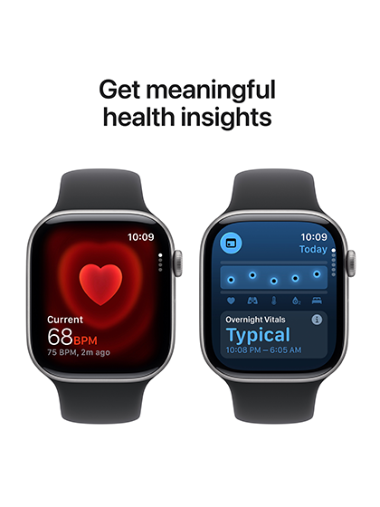 Vitals app featuring heart rate, respiratory rate, wrist temperature, blood oxygen and sleep duration ◊ Refer to legal disclaimers